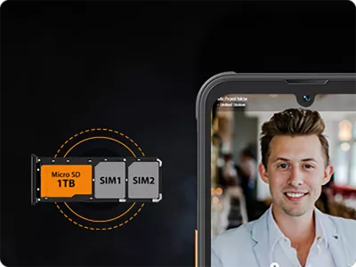 В Blackview BV5200 Pro используется гибридный слот, позволяющий одновременно использовать 2 СИМ или СИМ + карту памяти объёмом до 1Тб.